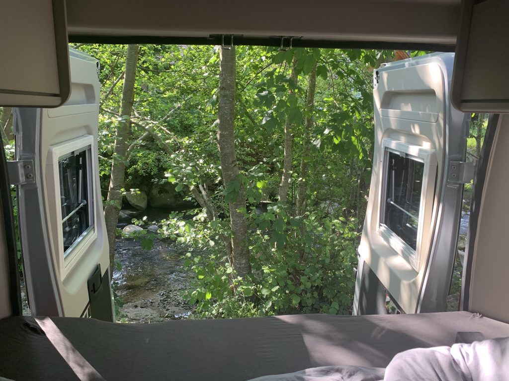 Und Abends einen wunderschönen Stellplatz auf einem Campingplatz direkt an einem Bach