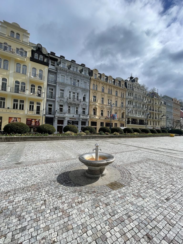 Am nächsten Morgen wurden wir von den Bauarbeitern, die den Parkplatz weiter bauen wollten, geweckt. Zum frühstücken sind wir dann hoch zu dem anderen Parkplatz gefahren, der am Vortag voll war. Danach sind wir nach Karlsbad reingefahren und haben oberhalb der Innenstadt geparkt. Dann sind wir runter in die Stadt gelaufen. Es war gar nicht so viel los, das war gut. Nur einige Touristen, die mit den typischen Porzellantassen an den Quellen Thermalwasser abgezapft und getrunken haben.